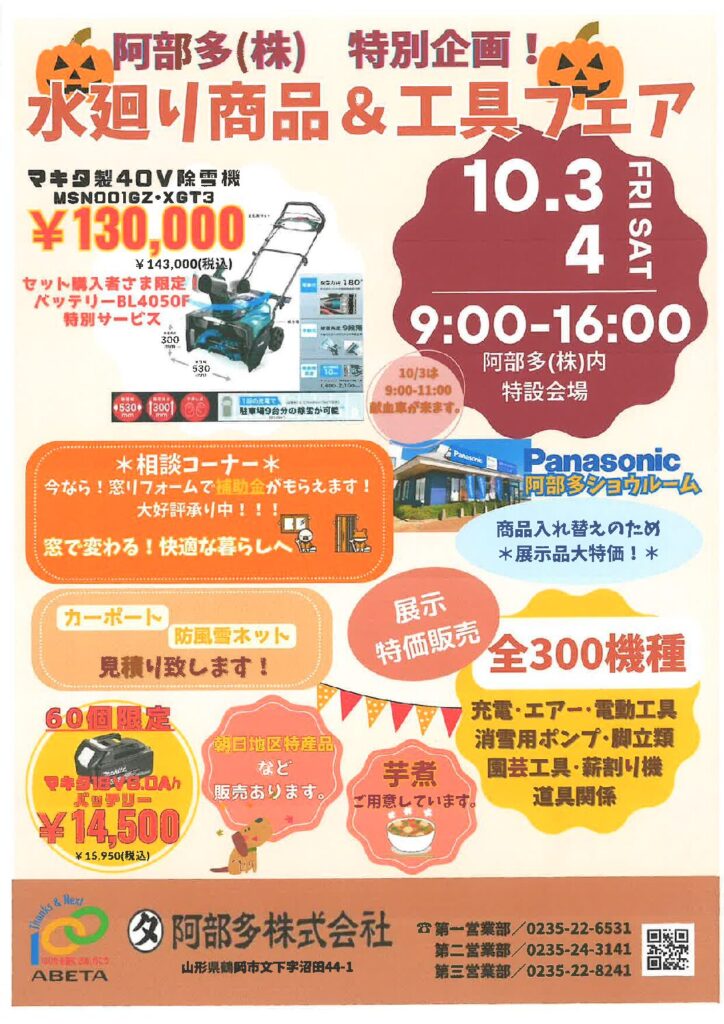 10月3日㈮、4日㈯に阿部多㈱内特設会場にて秋の展示会が開催されます!!